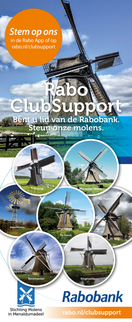 Bent u Rabobank lid? Maak gebruik van uw lidmaatschap door ons te steunen. U kunt vanaf 5 september tot 27 september stemmen. Uw “kostbare stem telt”. Zo steunt u onze molenstichting en zorgt u ervoor dat onze molens kunnen en blijven draaien. Klik hier om te stemmen!